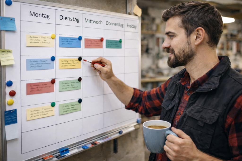 Sie bekommen Struktur statt Zweifel: Ihr Marketing läuft planbar im Alltag ab, mit klaren Prioritäten und einem verlässlichen Rhythmus. So entsteht ein System, das Zeit spart und Schritt für Schritt bessere Anfragen bringt.